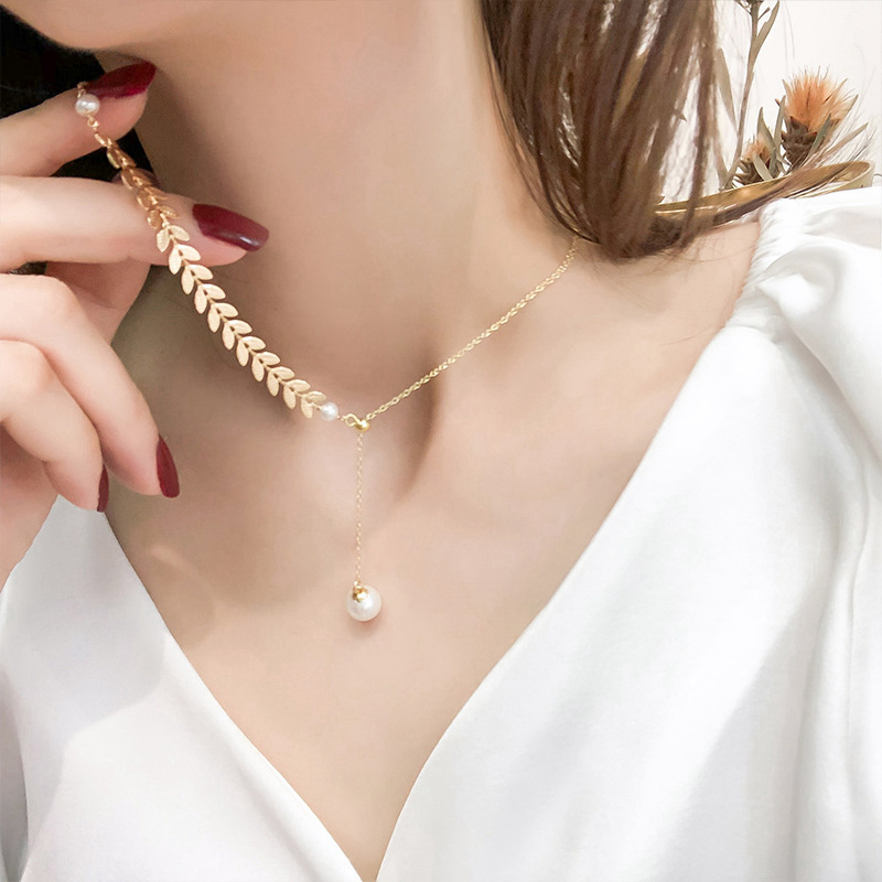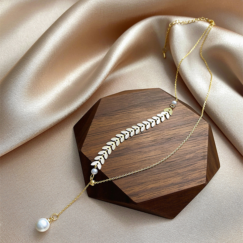 Wheat ear pearl necklace 2021 new women's sterling silver niche design sense pendant single light luxury high-end accessories