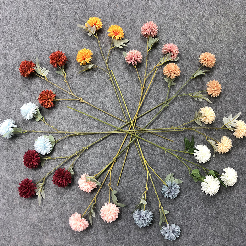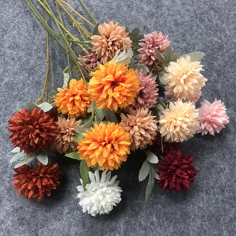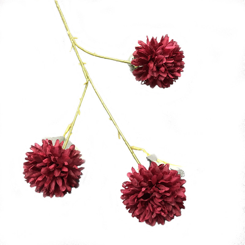 Factory direct sales simulation wedding flower material 3 heads ping-pong chrysanthemum red hotel wedding floor arrangement flower arrangement background flower art