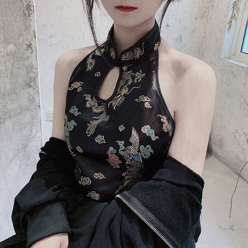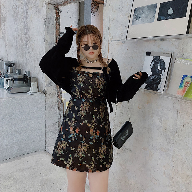 Hitong Grand Scale Women's Dress Fat Mm Summer Retro Display Slim Embroidered Qipao Harness Foreign Dress For A Short Skirt