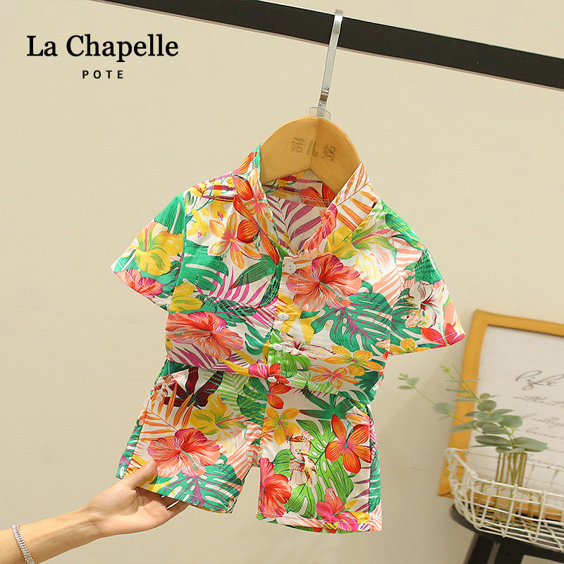 Lashabelle childlike summer dress male and female child Yangqi seaside beach suit baby short sleeves Two sets Holiday children