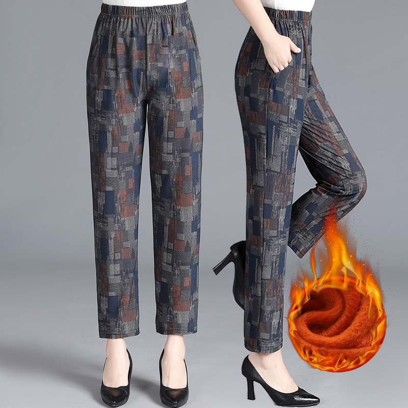 Middle-aged mother pants summer women's trousers high waist straight elastic outer wear middle-aged and elderly ice silk casual women's pants
