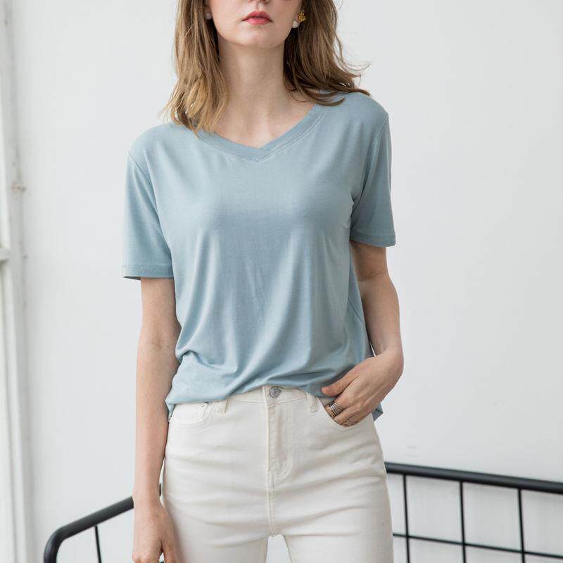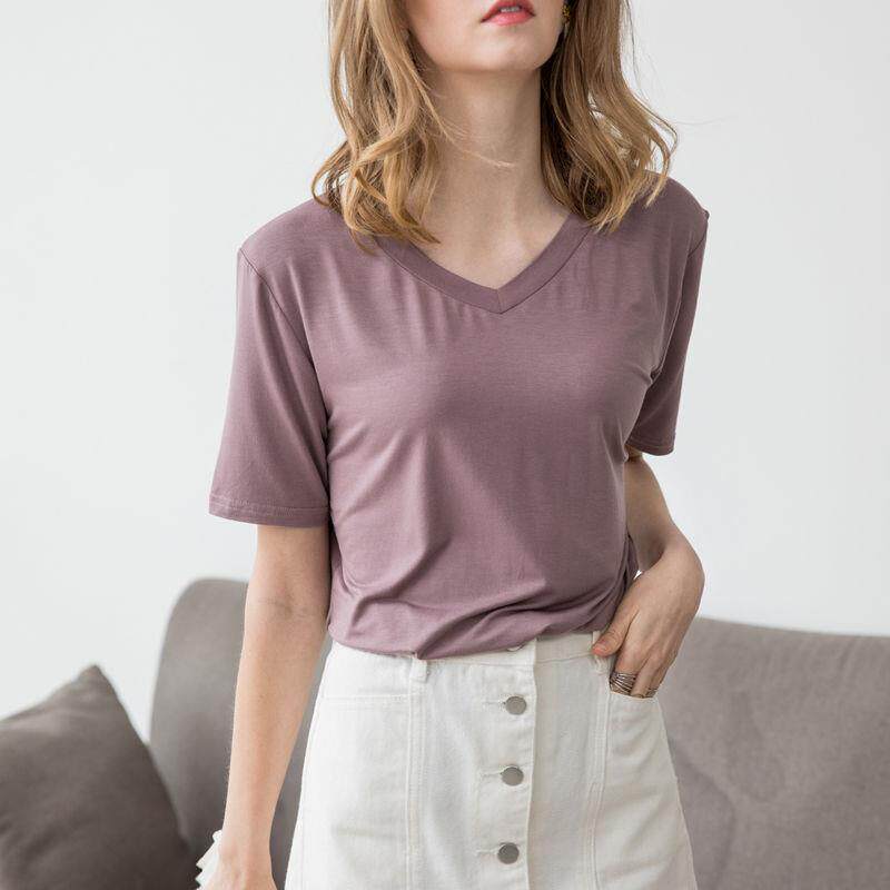 Summer dress new Modale short sleeve T-shirt woman loose black chicken heart V collar half sleeve large size T-shirt with undershirt blouse
