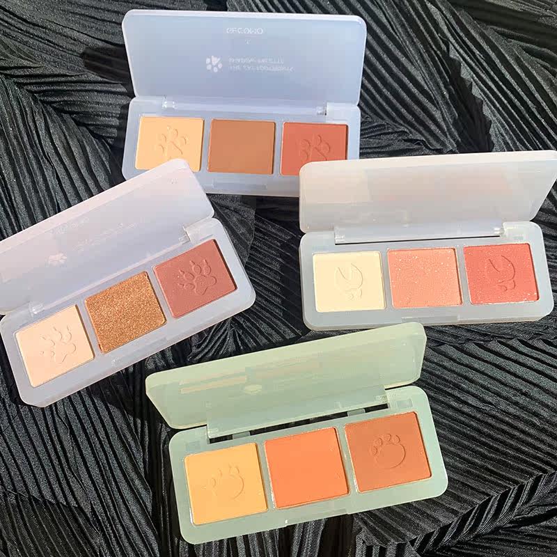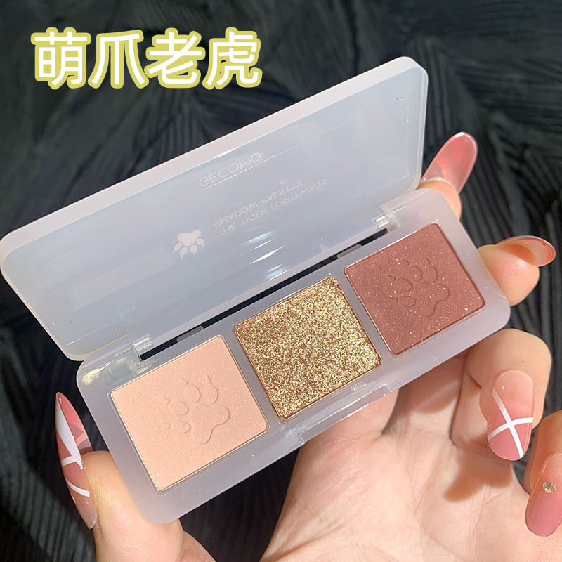 Cute claw three-color eyeshadow palette ins super hot net red style pearlescent matte glitter powder niche brand earth color parity style