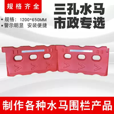 Three-hole water horse fence Blow molding water injection anti-collision bucket water horse traffic isolation pier guardrail Rotomolding construction fence
