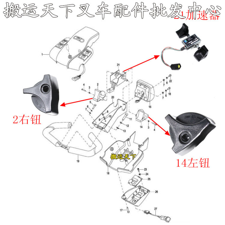Medium Force Electric Pile High Machine Accessories Handle Accelerator Knob Small Diamond Forward Back Switch Up And Down Knob