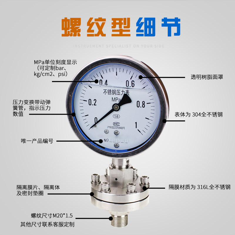 Full stainless steel threaded connection -0 1-0mpaYTP100ML full stainless steel threaded connection 0 6mpaYTP100ML full stainless steel threaded connection 1mpaY