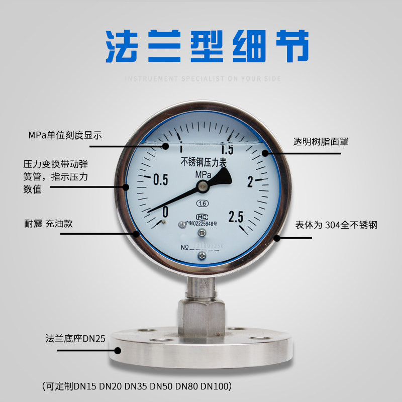 YTP100ML stainless steel diaphragm pressure gauge flange threaded connection diaphragm DN25DN20 Teflon-Taobao