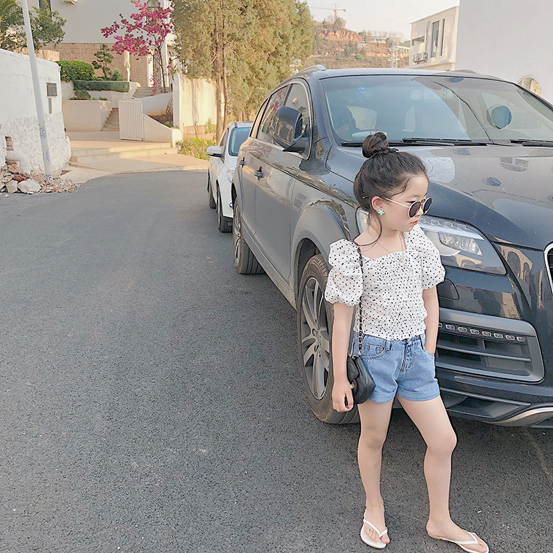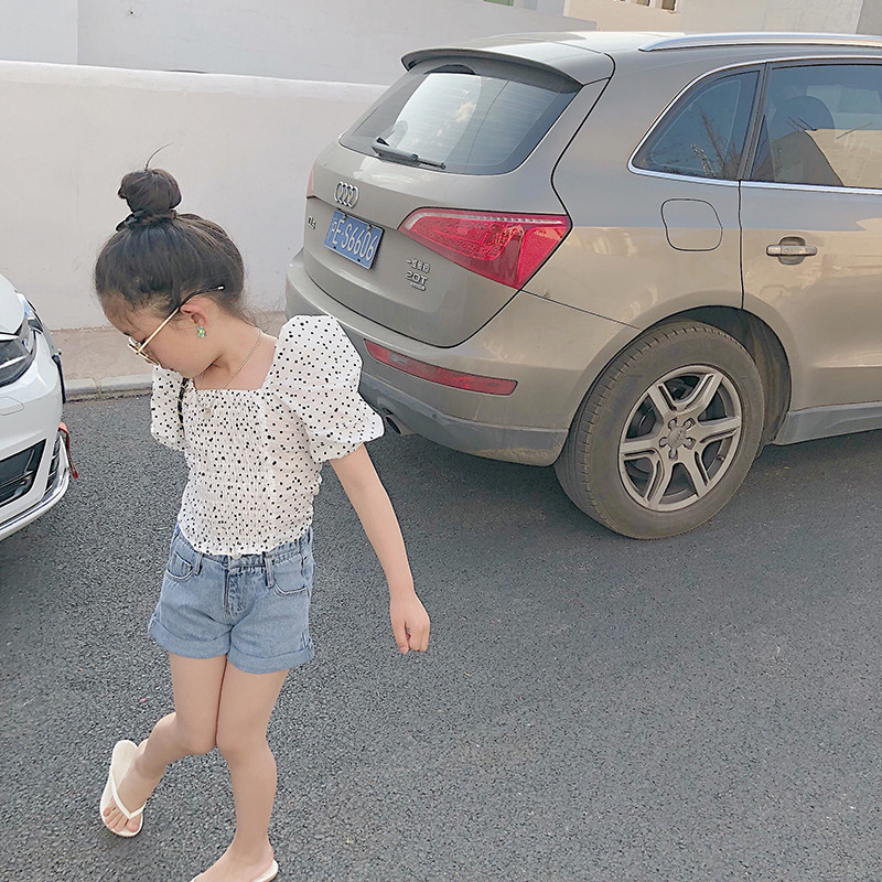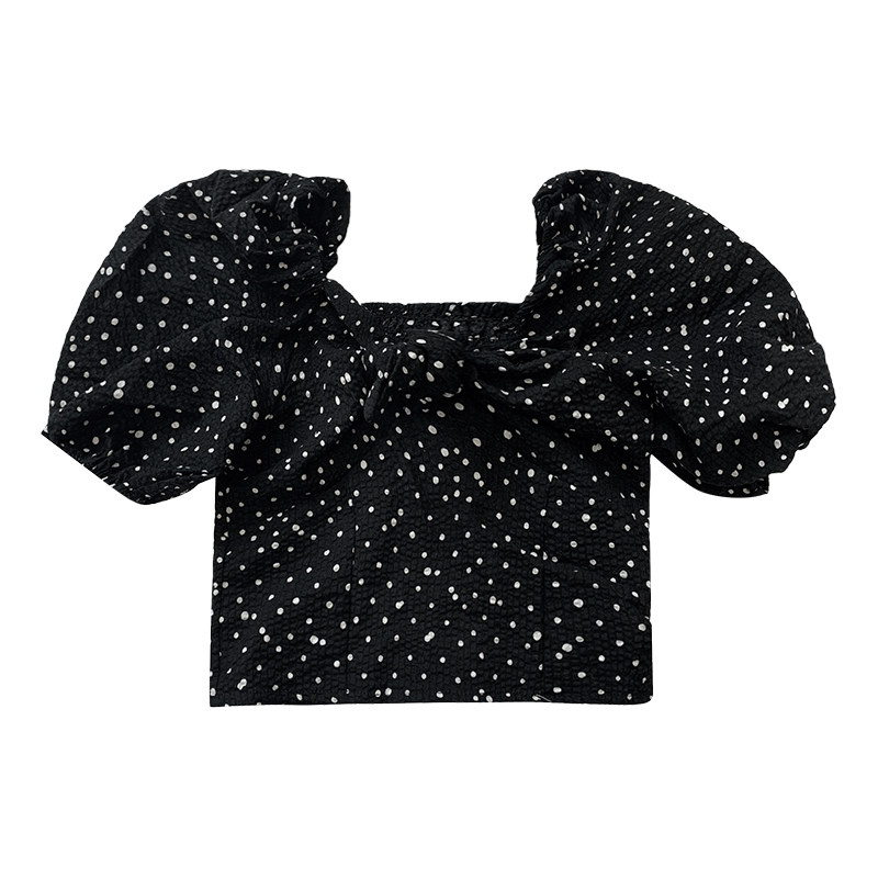 Salted egg shrimp rice girl black and white dot puff sleeves T shirt toddler summer clothing T children before and after two wearing short-sleeved tops