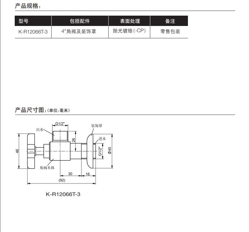 KOHELR angular valve cross valve hot and cold water square universal water stop valve ceramic angle valve full copper K-12066T