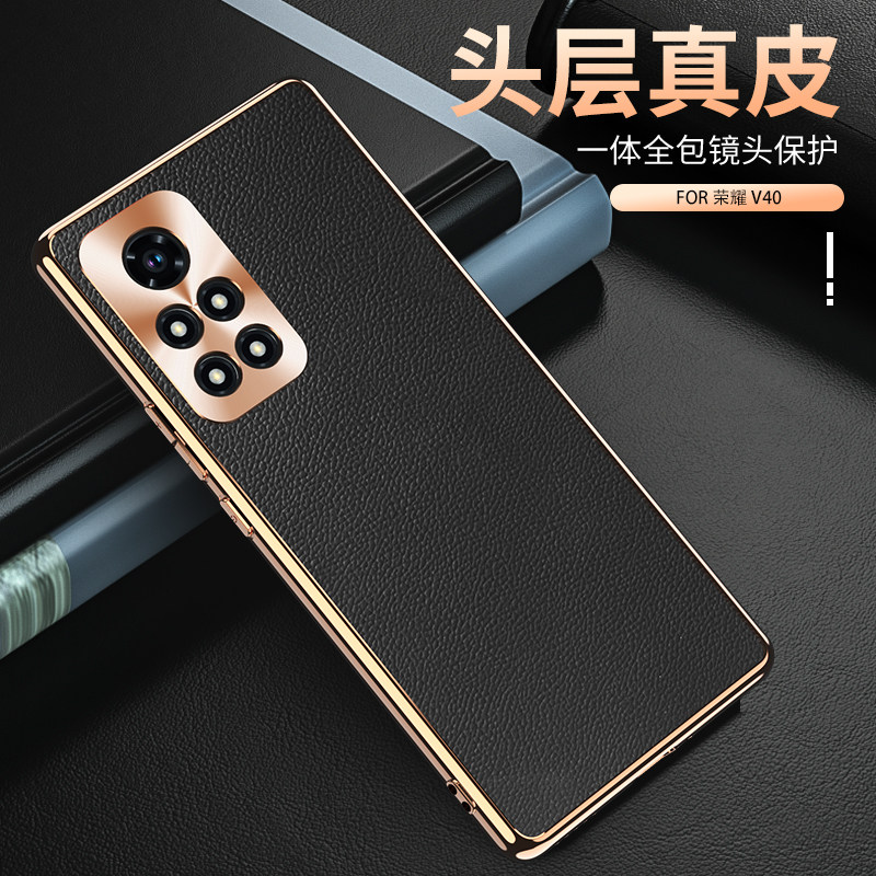 Applicable Huawei Honor v40 light extravagant version leather mobile phone protection shell Huavielectroplating 40 full bag with lens honorv40 curved screen half bag men's upscale anti-fall female honor protective sheath