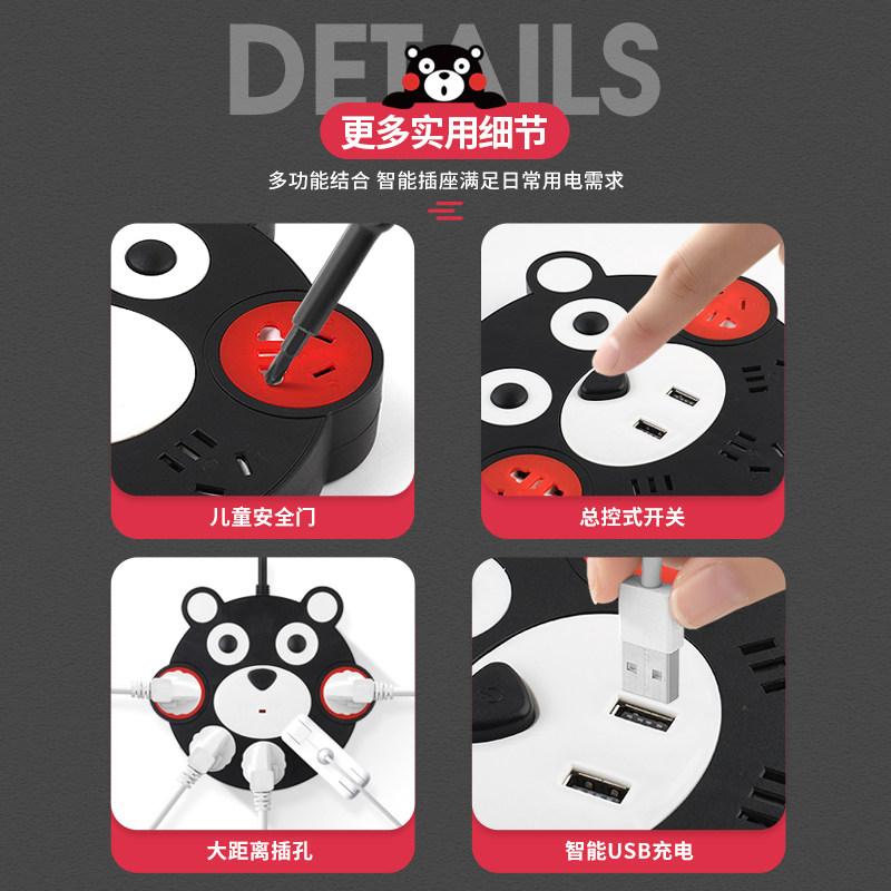 Sunobei socket USB charging plug row plug Household multi-function power supply wiring board plug board Wireless converter