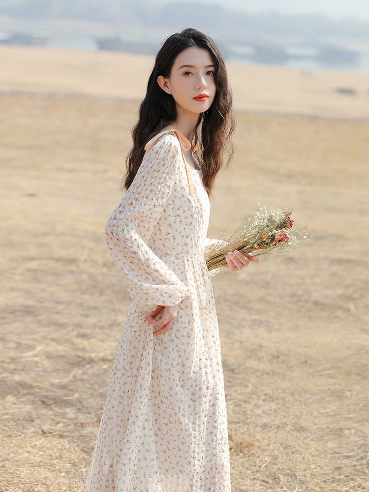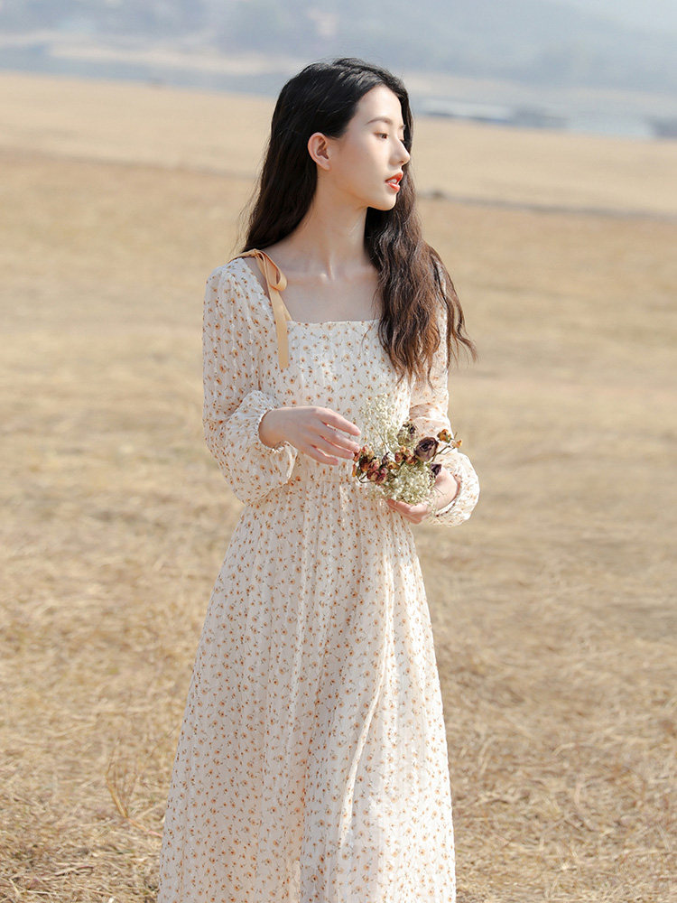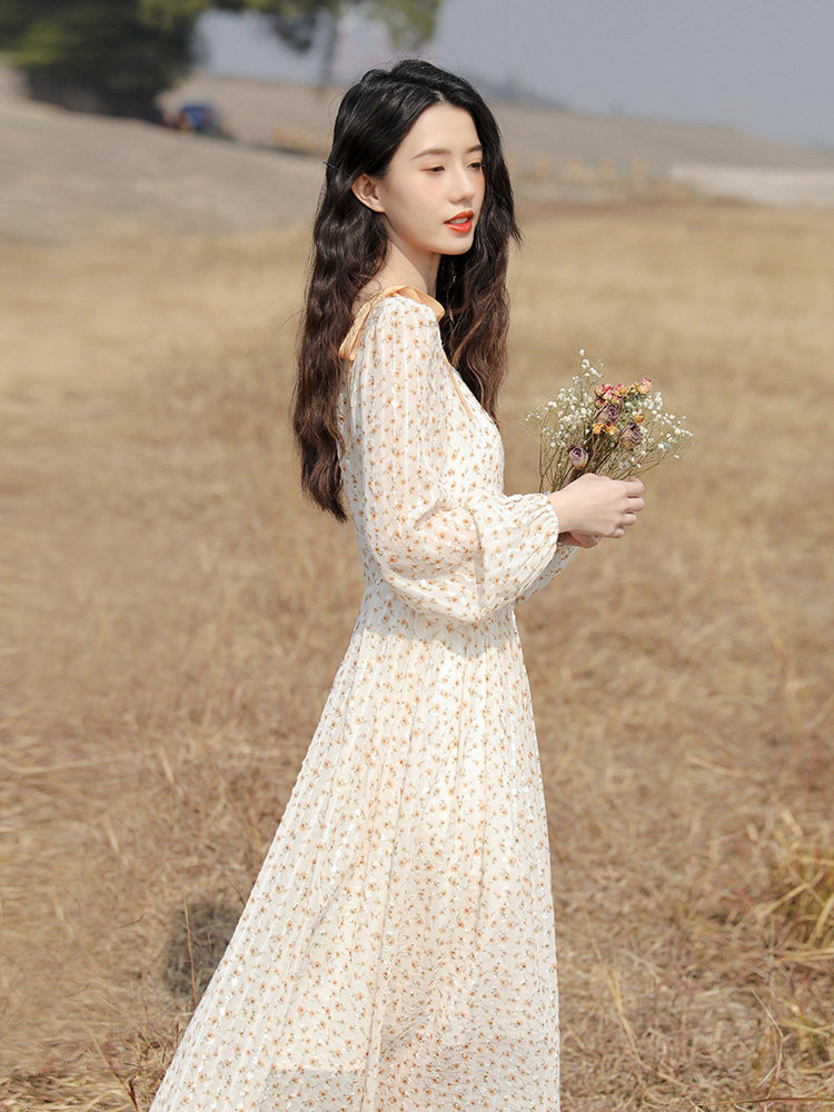 Small sub-style temperament gently windy and snow-spun with long sleeves lined with clothes and skirts fairy long skirts for women's autumn-Taobao