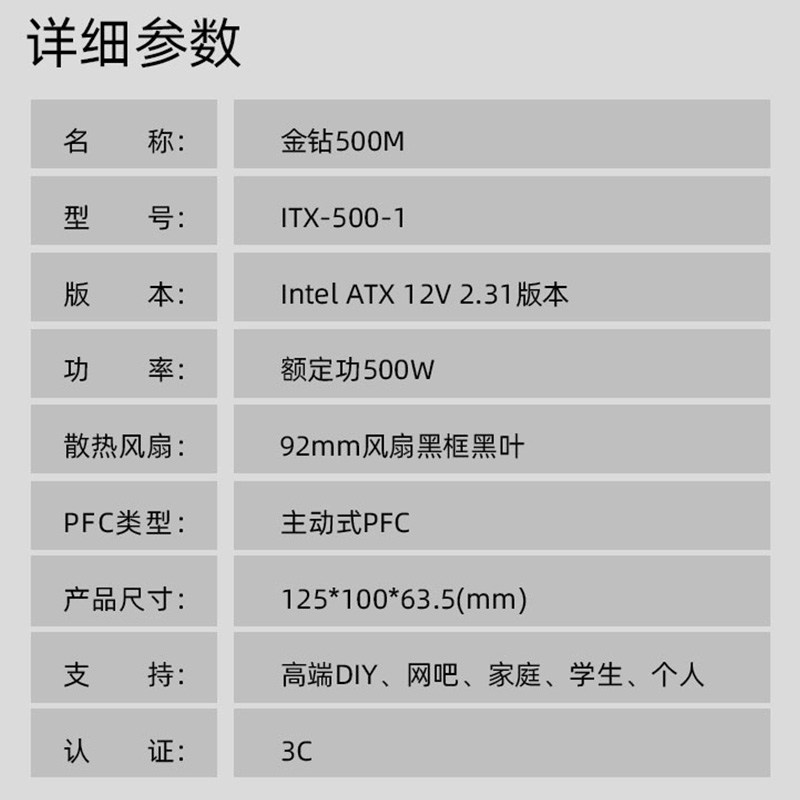Xianma Gold Diamond 500M Rated 500W Gold Medal Full Module ITX Main Shell SFX Small Power Supply Supports 2070 Graphics