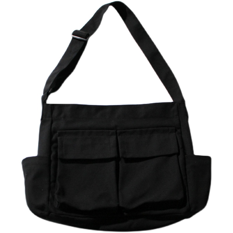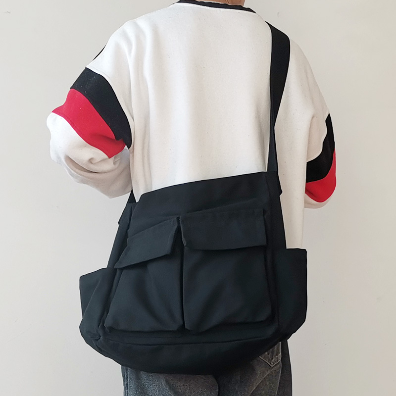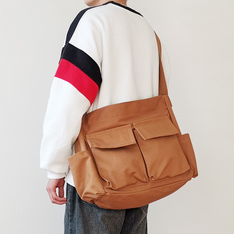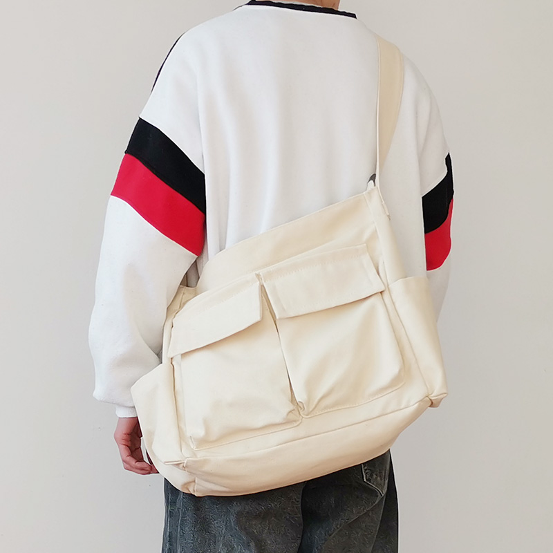 Shoulder bag horizontal retro large-capacity messenger bag tooling canvas messenger bag solid color male and female student schoolbag tide brand