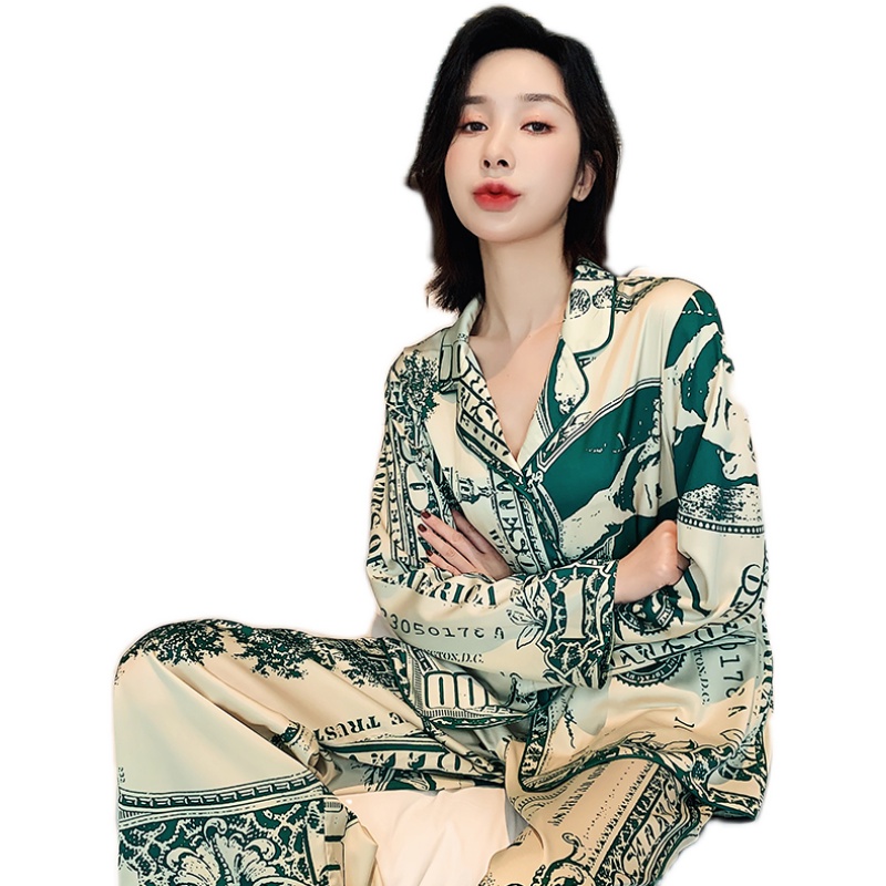 Pajamas Senior Sense Female Summer Ice Silk Thin Couple Personality European and American Style Loose Silk Men's Home Clothing Set
