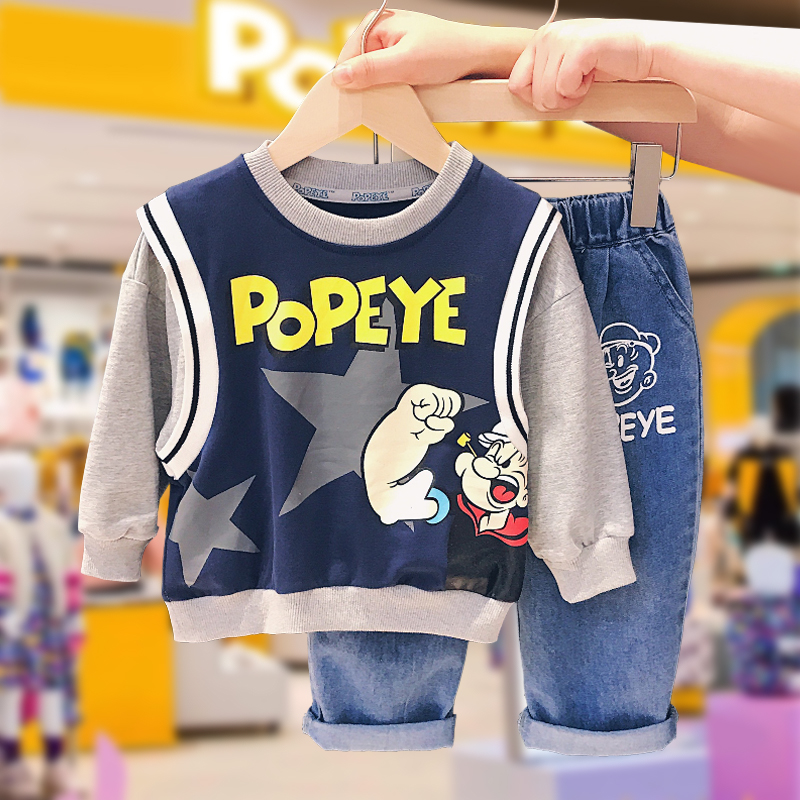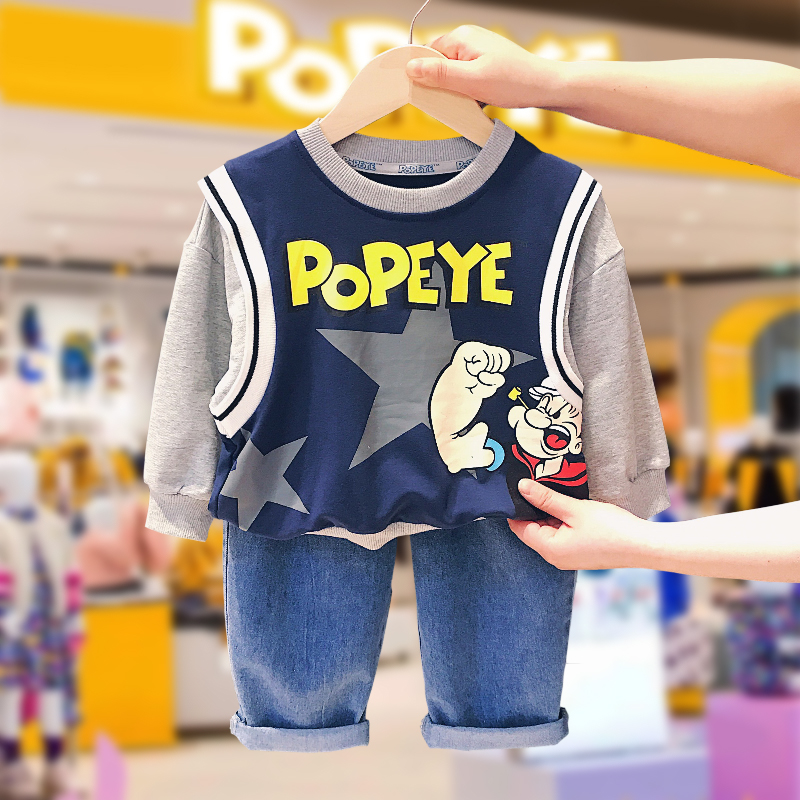 Vigorous sailor POPEYE children's fake two-seater male and female children long sleeve blouses baby 2022 new spring clothing