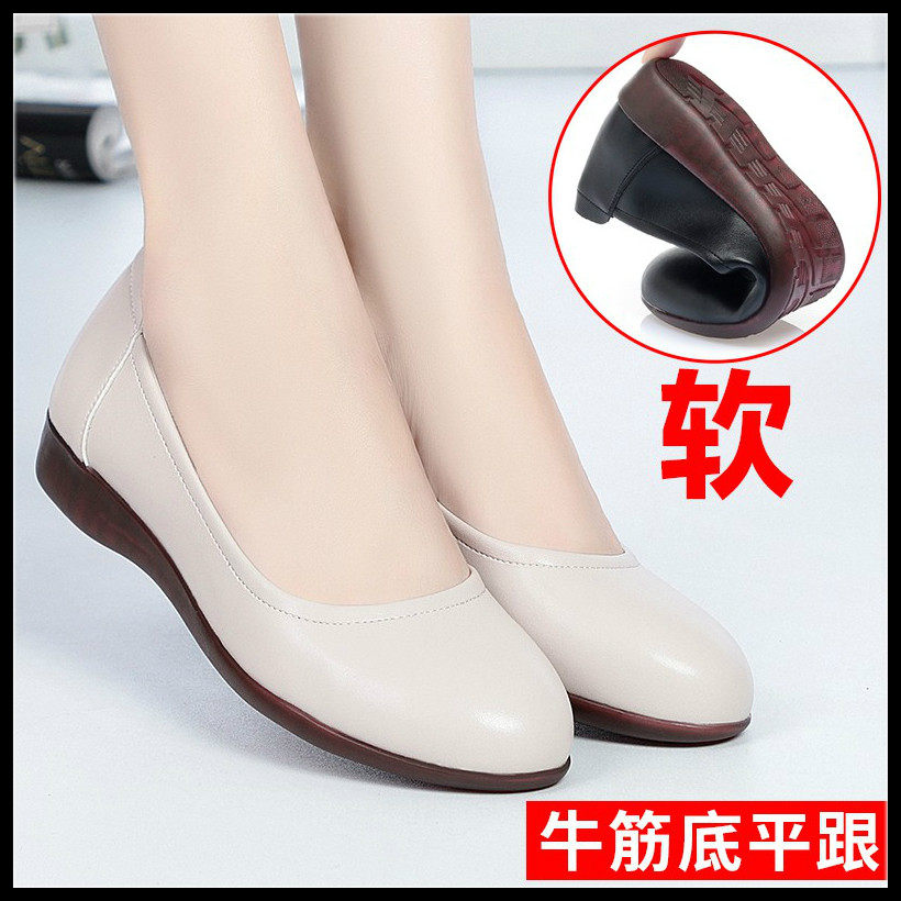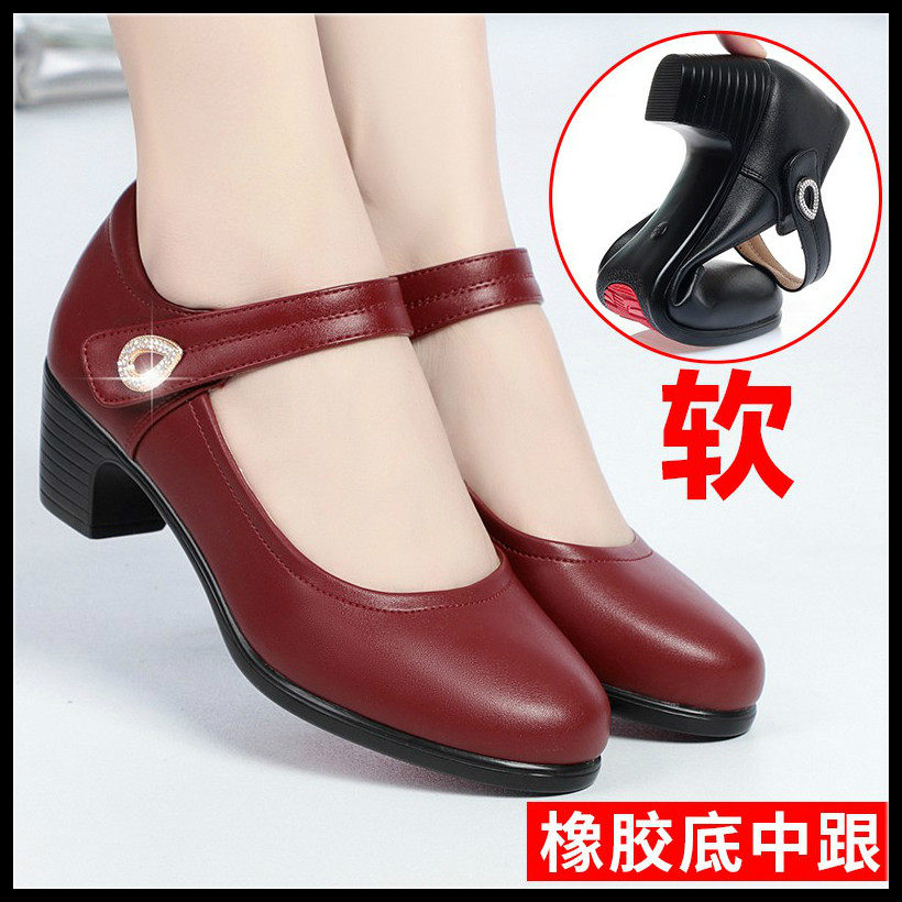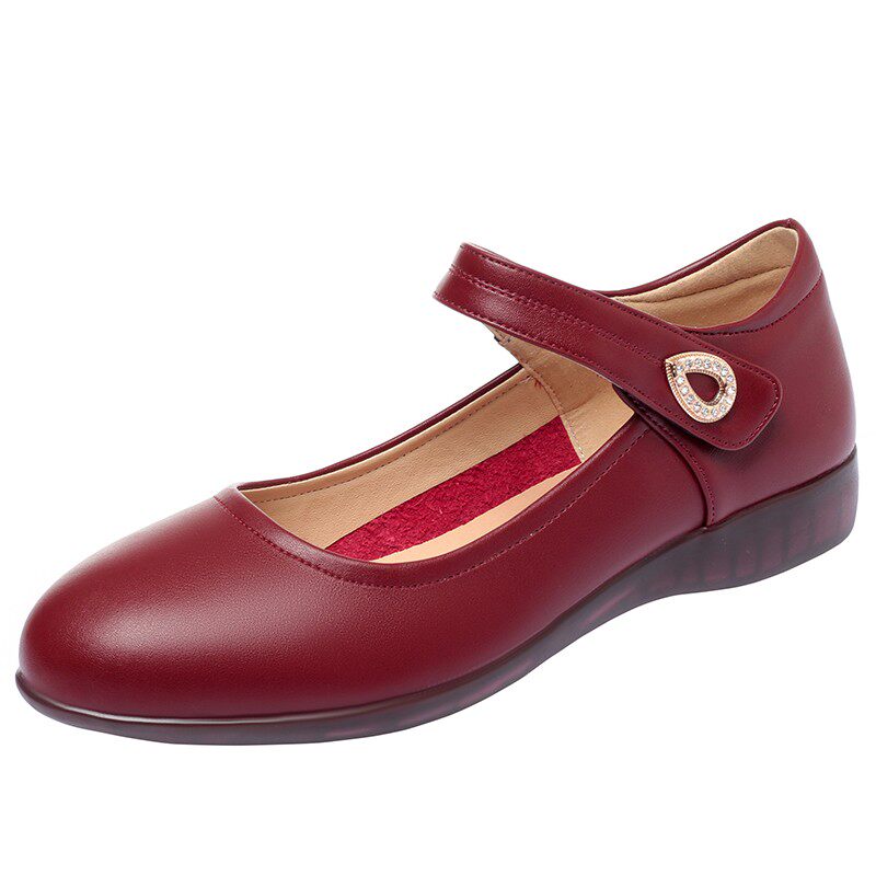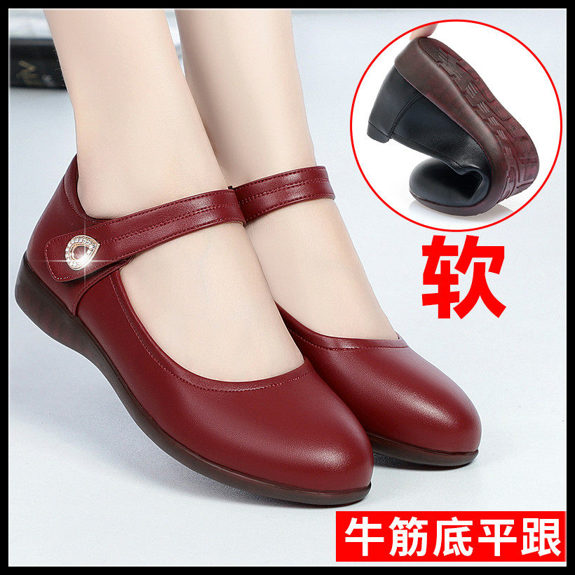 Mother shoes single shoes leather flat bottom comfortable soft bottom run moon shoes middle-aged summer middle-aged and elderly one word buckle red shoes leather shoes