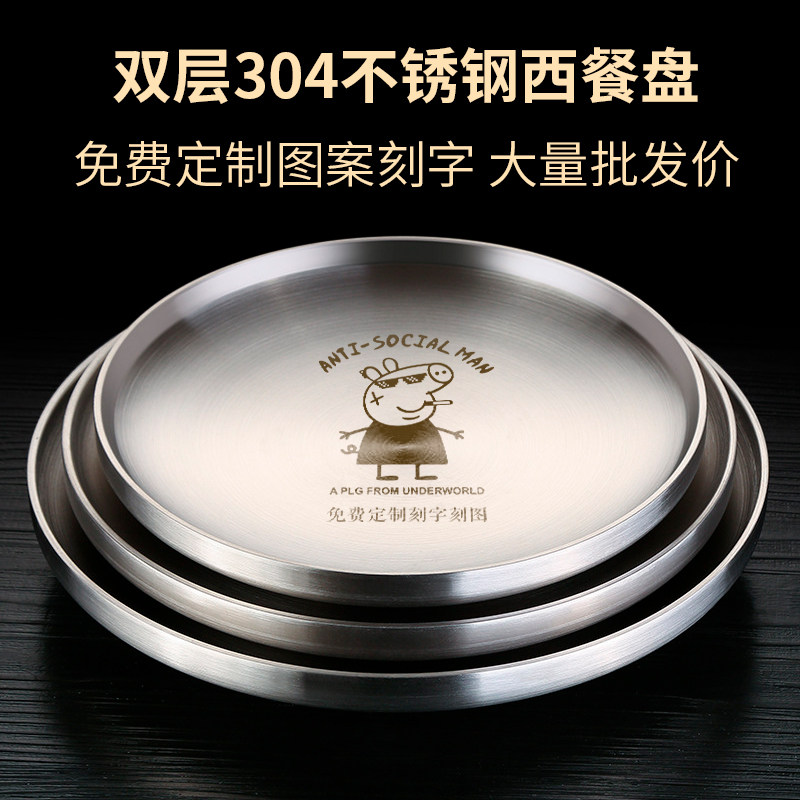 304 stainless steel steak plate disc barbecue heat insulation plate shallow thickened fruit high-value food food grade