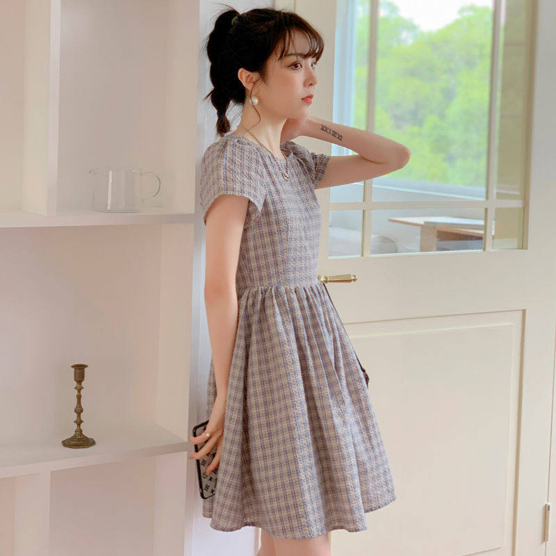 Plaid dress 2022 new summer small fresh schoolgirl Korean version loose small mid-length skirt trendy