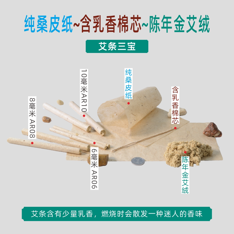 10mm handmade frankincense moxa sticks AR10 mulberry paper frankincense cotton core gold moxa velvet smoke less dust and no spark Wenyuantang