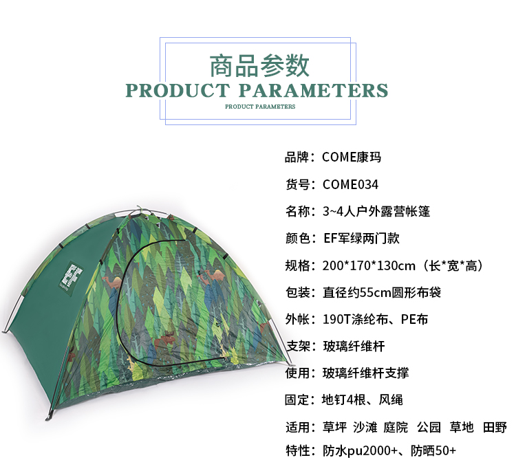 Outdoor camping out of the beach waterproof and rain-proof sunscreen quick opening tent Leisure travel Suburban Tour Mesh Yarn Double Door Tent