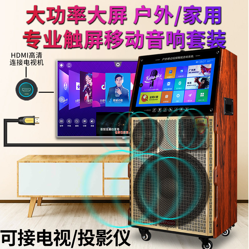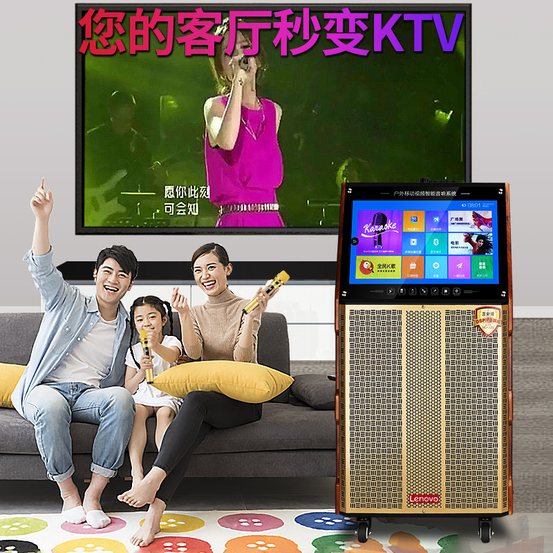 Lenovo square dance audio with display large screen outdoor portable mobile trolley speaker bluetooth film home K song All wireless microphone professional singing and dancing ktv performance