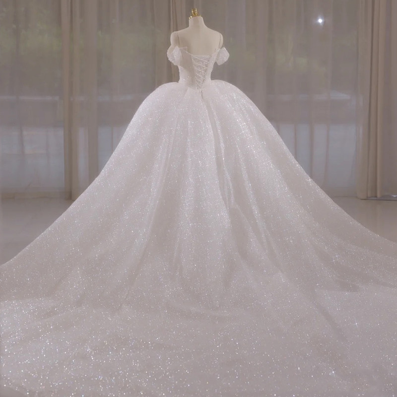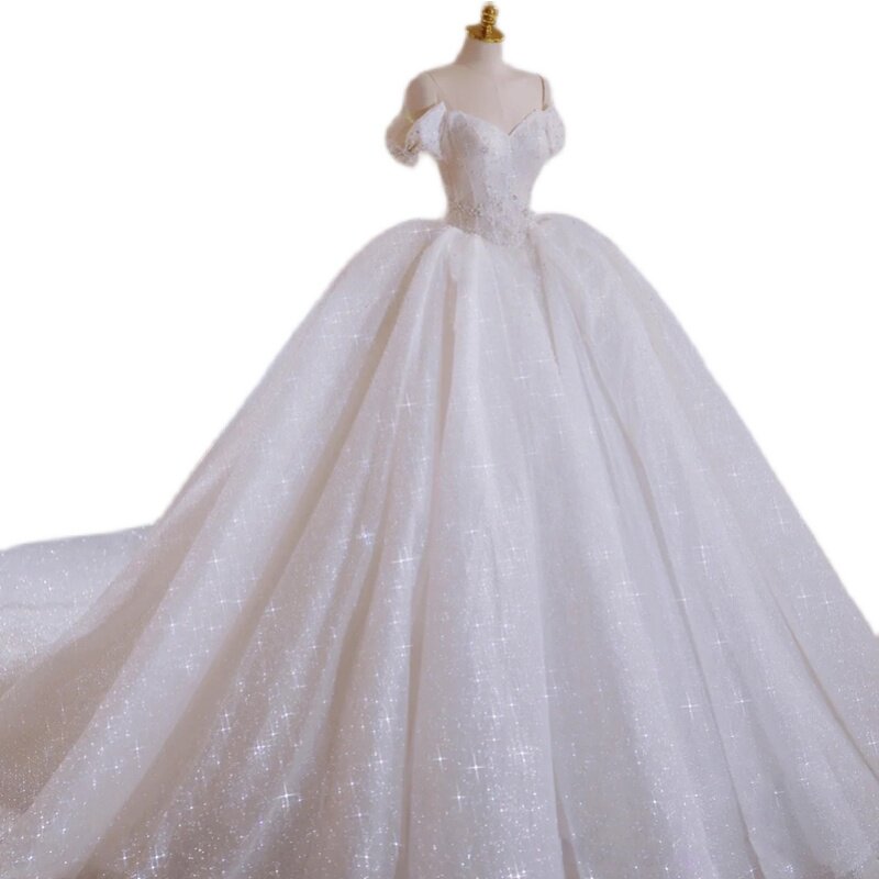 Light main wedding dress 2021 new bride heavy industry high-end luxury word shoulder tail Forest department super fairy dream starry sky woman