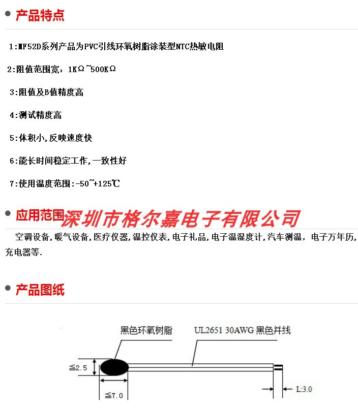 MF52AT-103F3380 THERMISTOR NTC MF52D 10k 1% 60mm with small black wire manufacturer direct selling-Taobao
