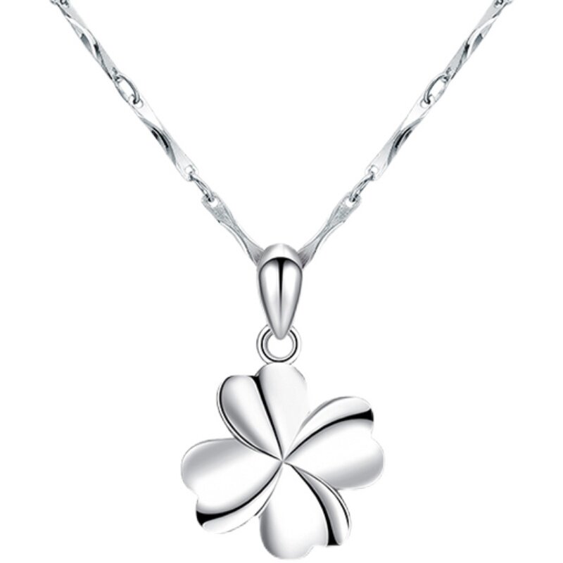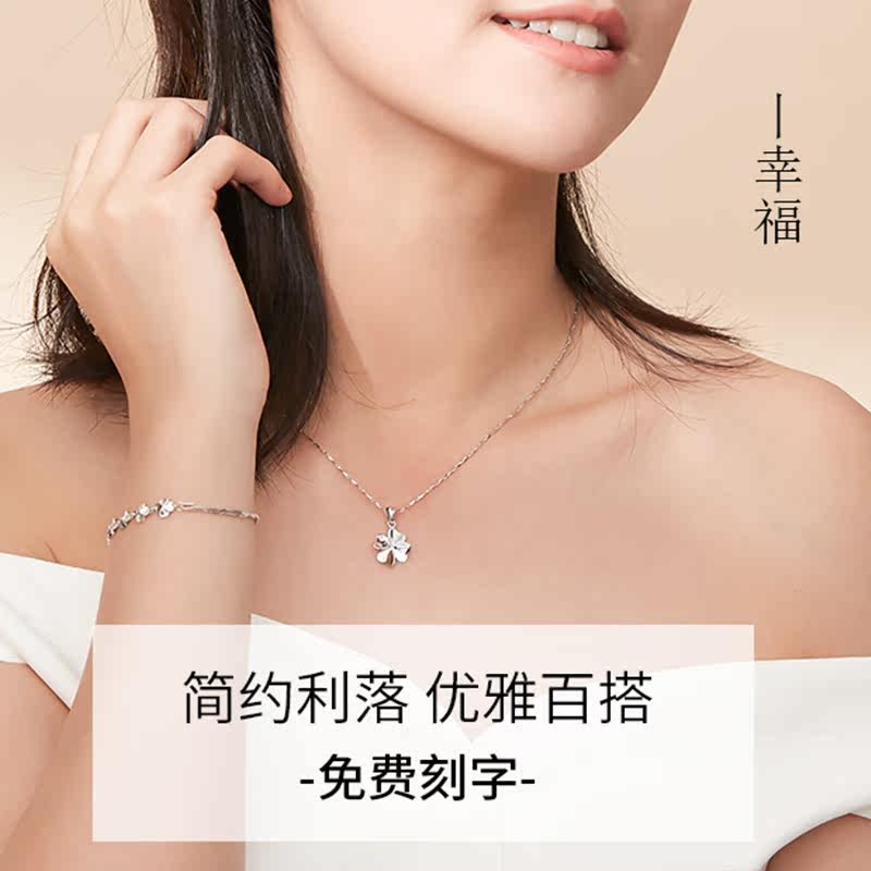 Four Leaf Grass Necklace Woman 999 pure silver lock bone chain Senteyo pendant birthday 520 Gift Valentine's Day to send girlfriend