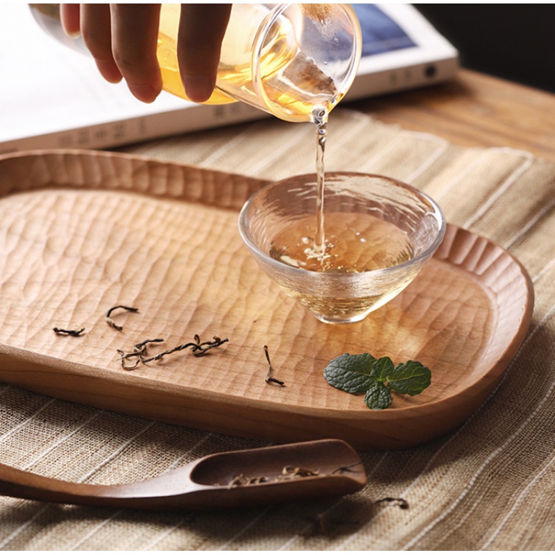 Japanese handmade tea plate Solid wood carved oval plate Creative wooden Kung Fu tea tray Coffee snack plate