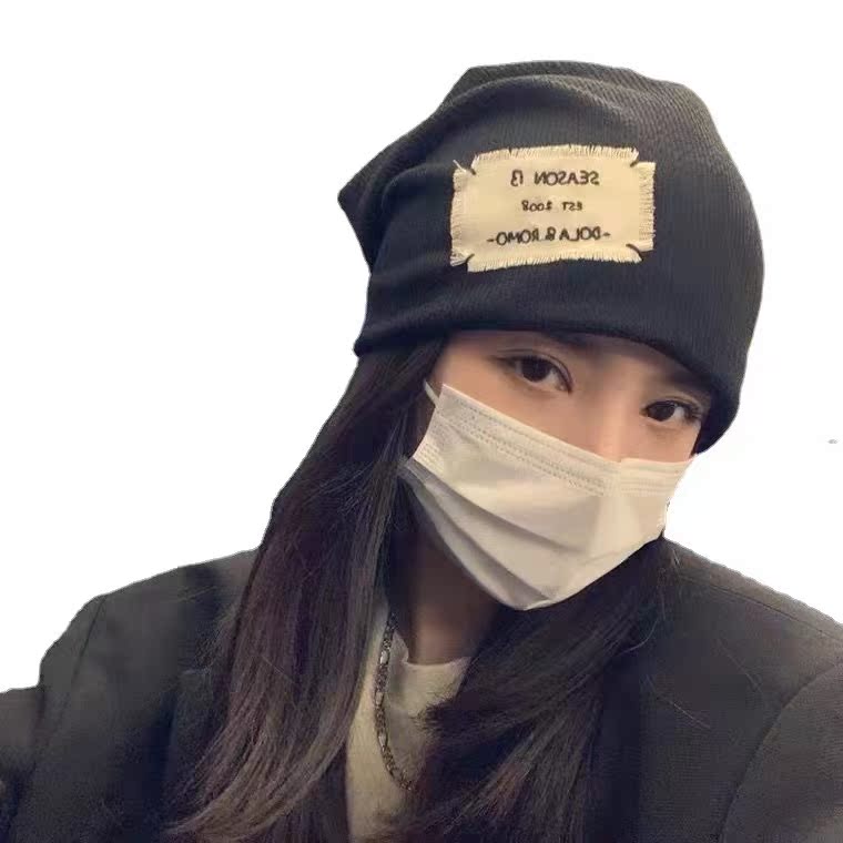 (Multi-purpose pile cap)-knitted cotton bow powder (capped) letters are elastic-Khai (capped) letters are elastic-Black (capped)