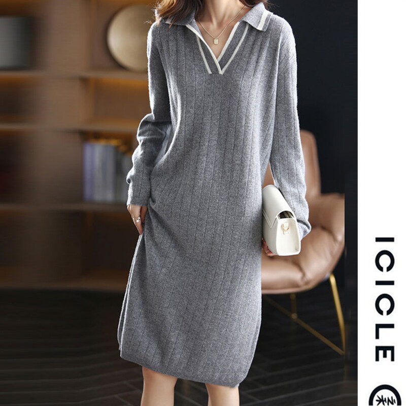 ICICLE Zhihe counter 2022 autumn and winter new knitwear women's pure wool dress loose shirt skirt