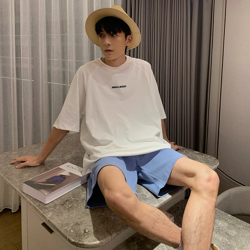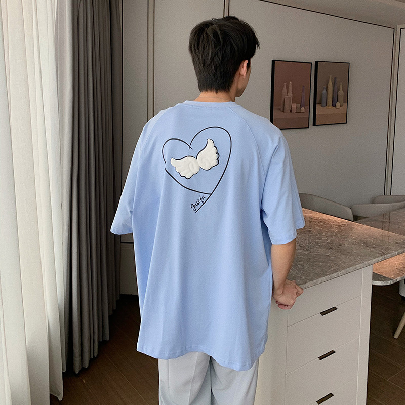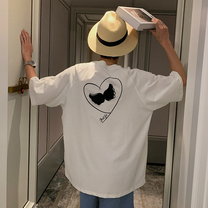 Hualun summer loose back wings couple short-sleeved T-shirt male black round neck handsome Korean cotton T-shirt