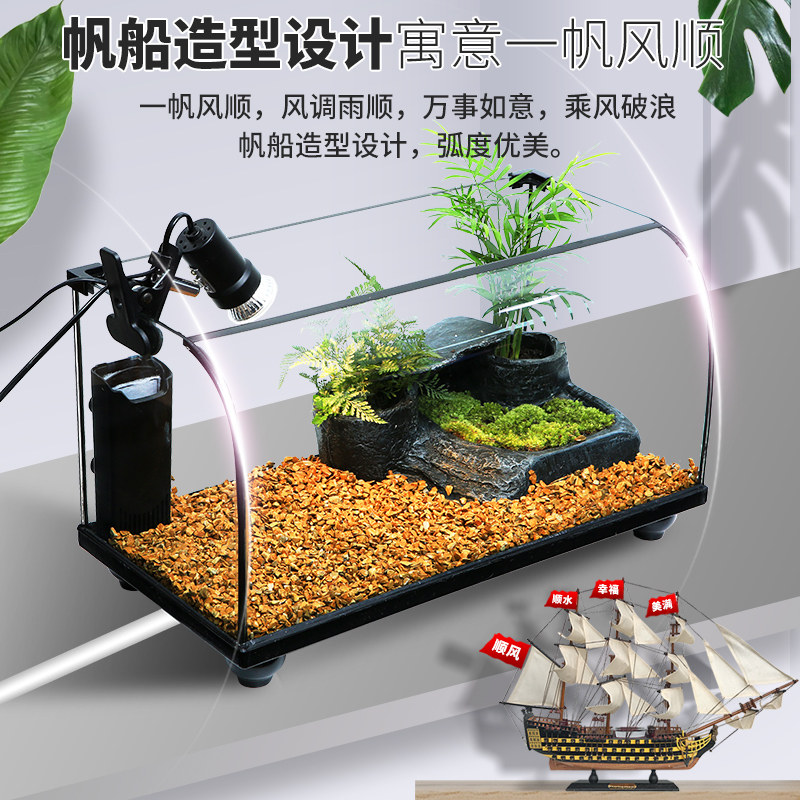 Creative turtle tank ecological tank with sun terrace villa landscaping water and land tank glass living room large and small household turtle fish tank