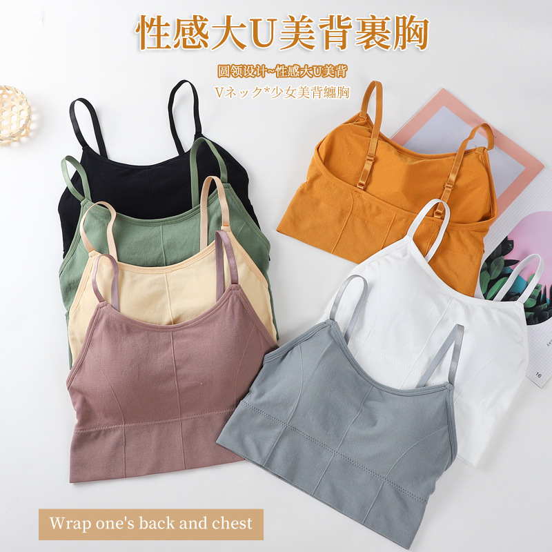 Girls' scheming sexy vest suspenders U-shaped beautiful back detachable chest pads without steel rings inside and outside wearing tube top