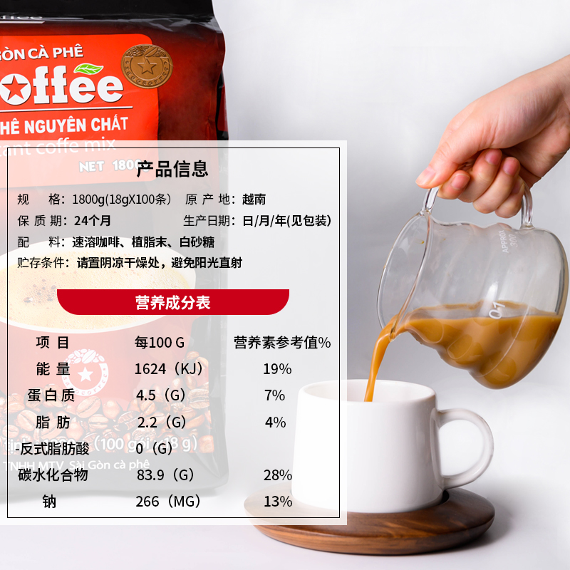 Vietnam import Saigon original 1800g three-in-one instant coffee powder 100 * 6 bags of whole box brewed drinks