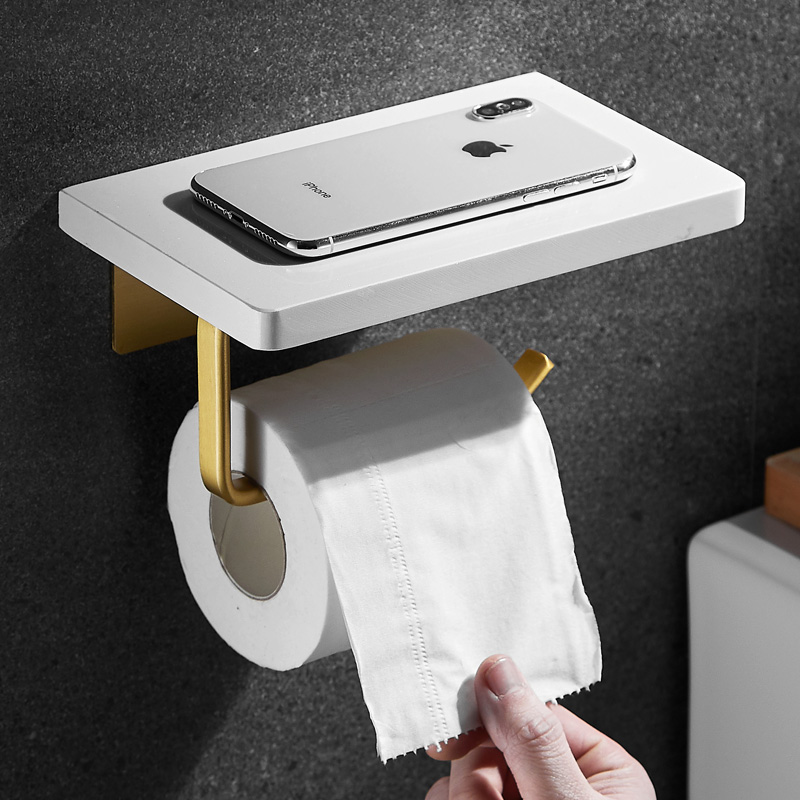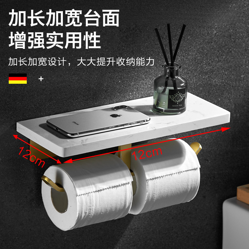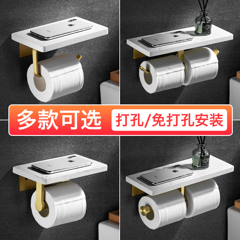 Marble paper towel rack Powder room toilet roll toilet paper rack Nordic mobile phone shelf Bathroom wall-mounted nail-free hole-free