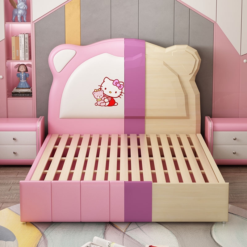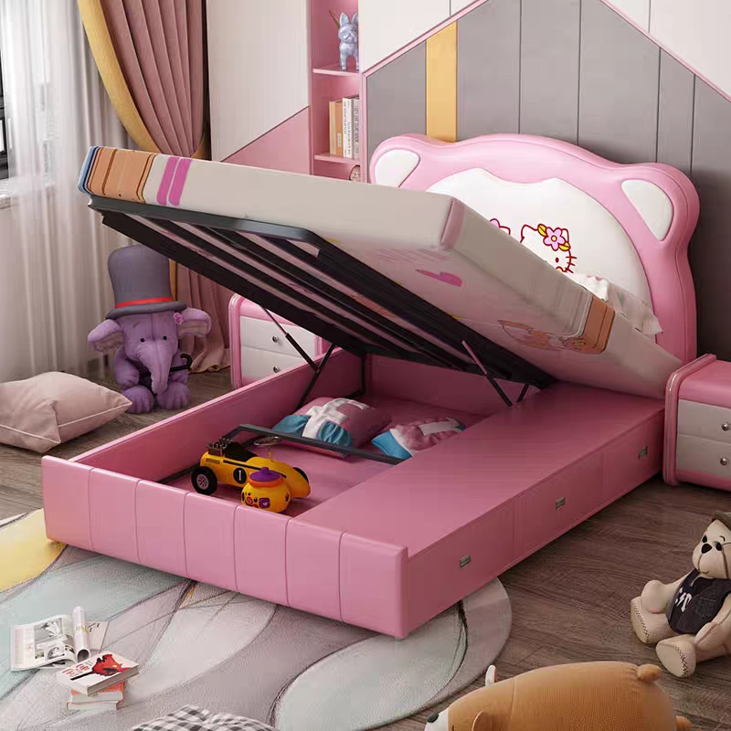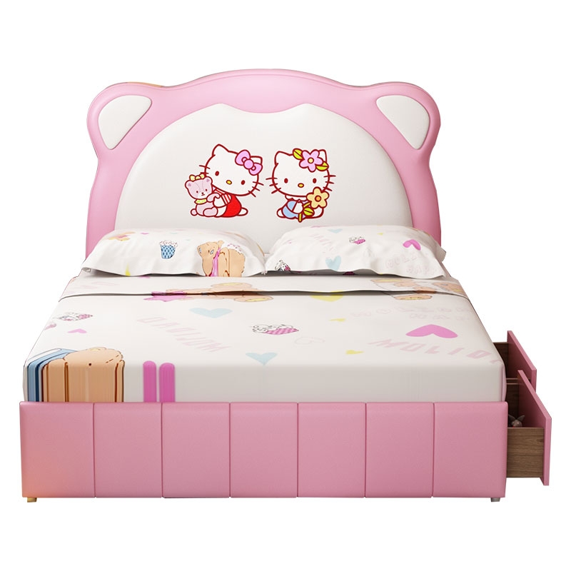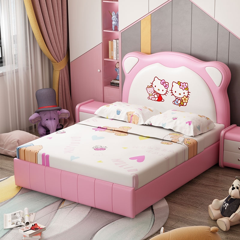 Children's princess bed modern minimalist cartoon leather bed girl single bed children's bed girl cat soft bag storage bed