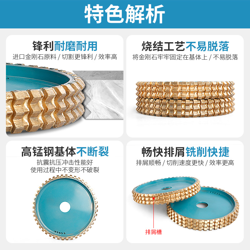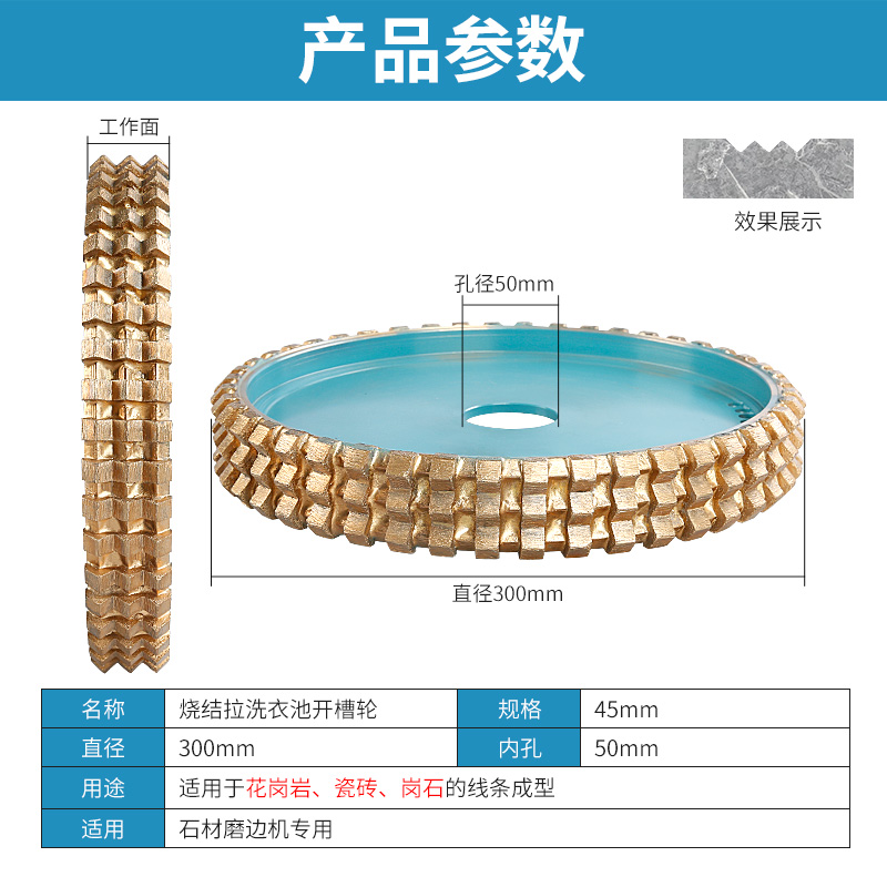 Diamond sintered grinding wheel stone granite pull laundry pool slotted V-shaped wheel diameter 300 holes 50 abrasive gong head