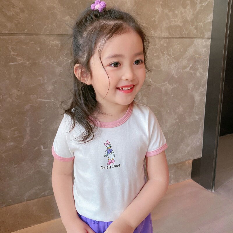 Children's clothing 2021 girls cartoon T-shirt summer clothing new baby girl short-sleeved Western style wild top children's bottoming shirt