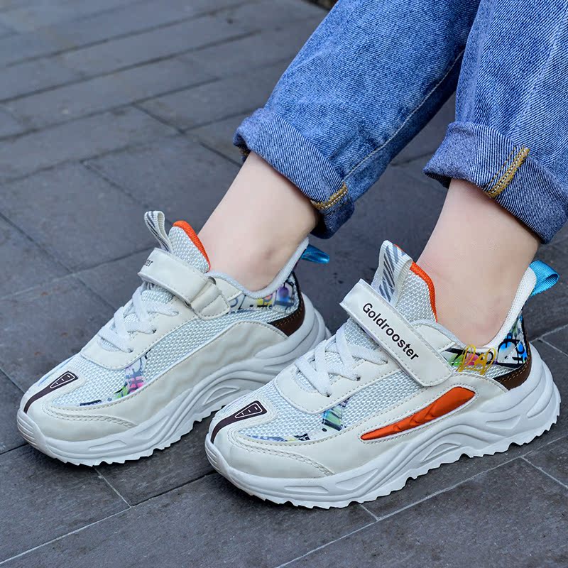 2021 new golden rooster spring and autumn children's sports shoes mesh flying woven breathable boys running girls travel shoes microfiber