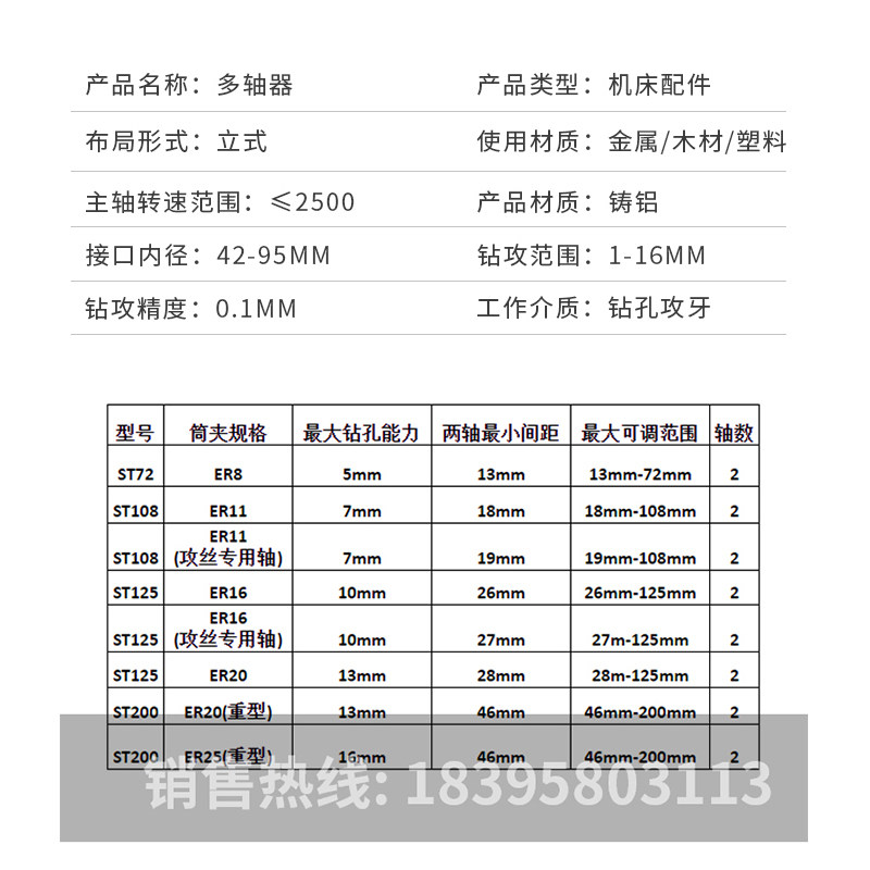 Multi-bit multi-axis adjustable accessories Adjustable drilling machine Table drilling machine gear swing arm Output shaft Universal tapping customization