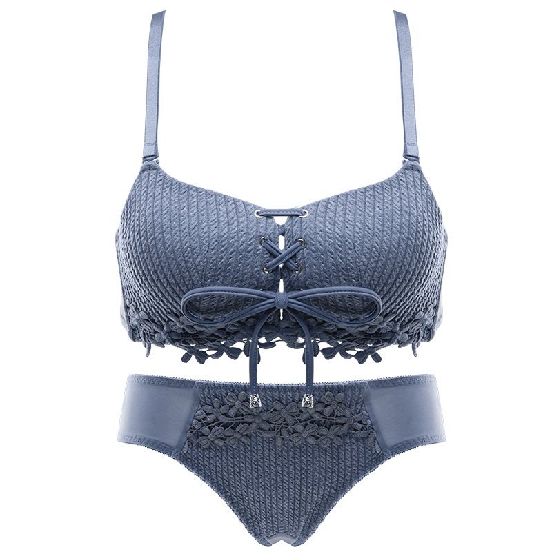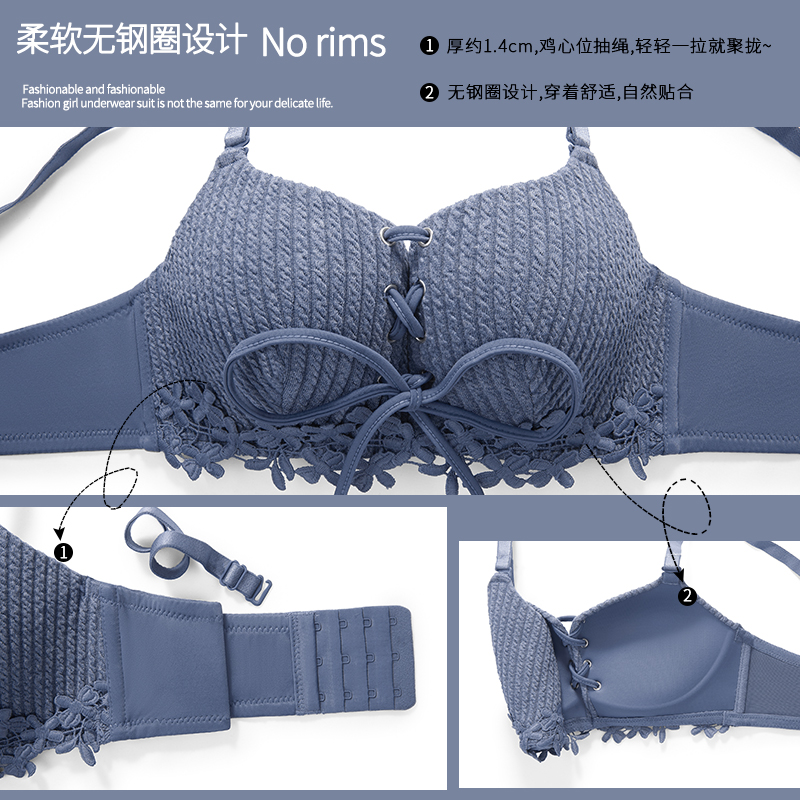 Day Ensemble Summer Thin models Adjusted Underwear Women No Steel Ring Small Breasts Gather Big Text Bra Underpants Pure Color Suit