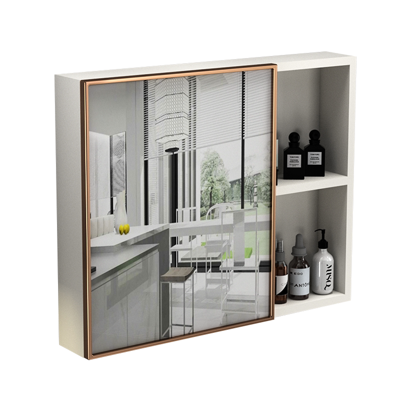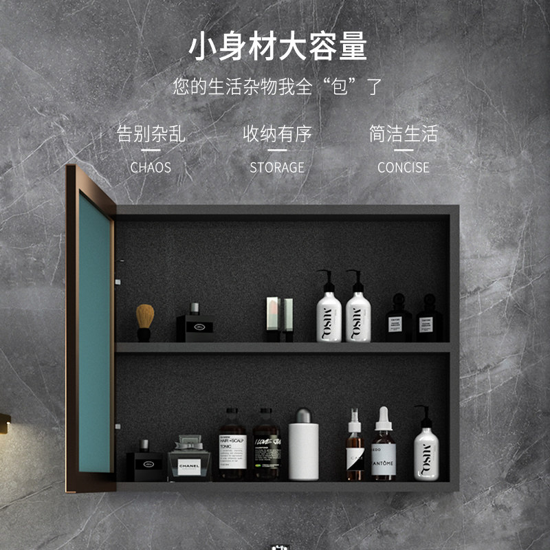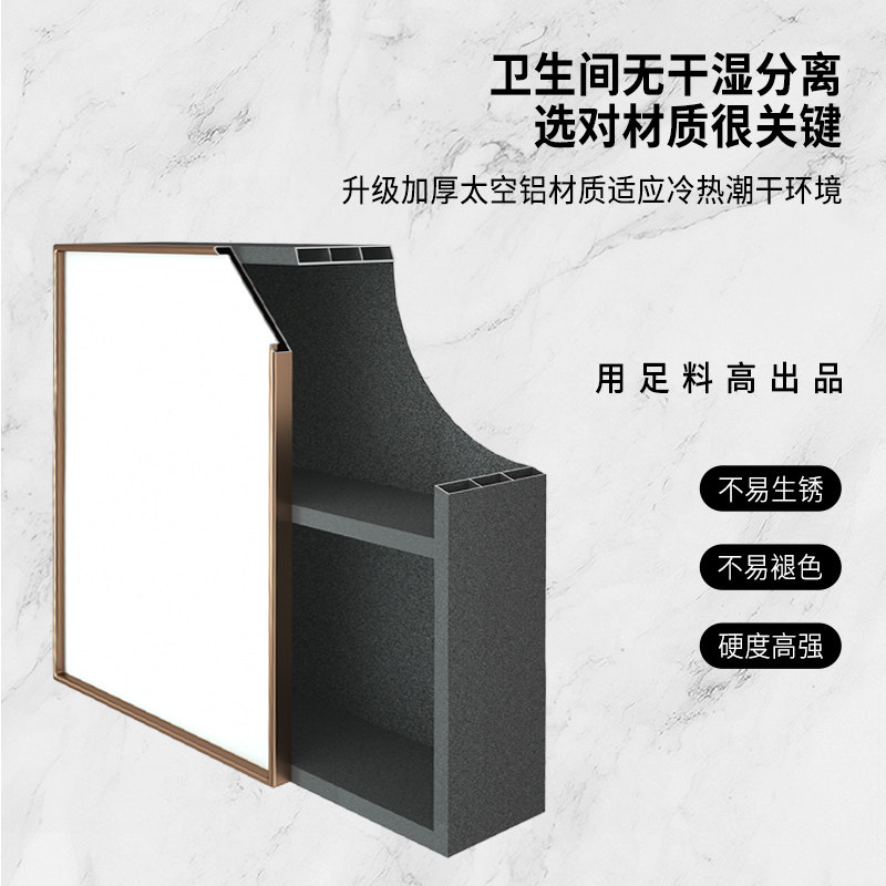 Space aluminum wall-mounted bathroom mirror cabinet Simple powder room separate mirror box with shelf washroom washbasin mirror