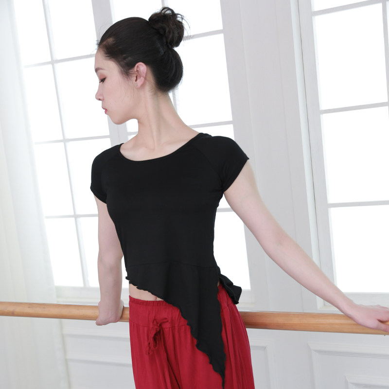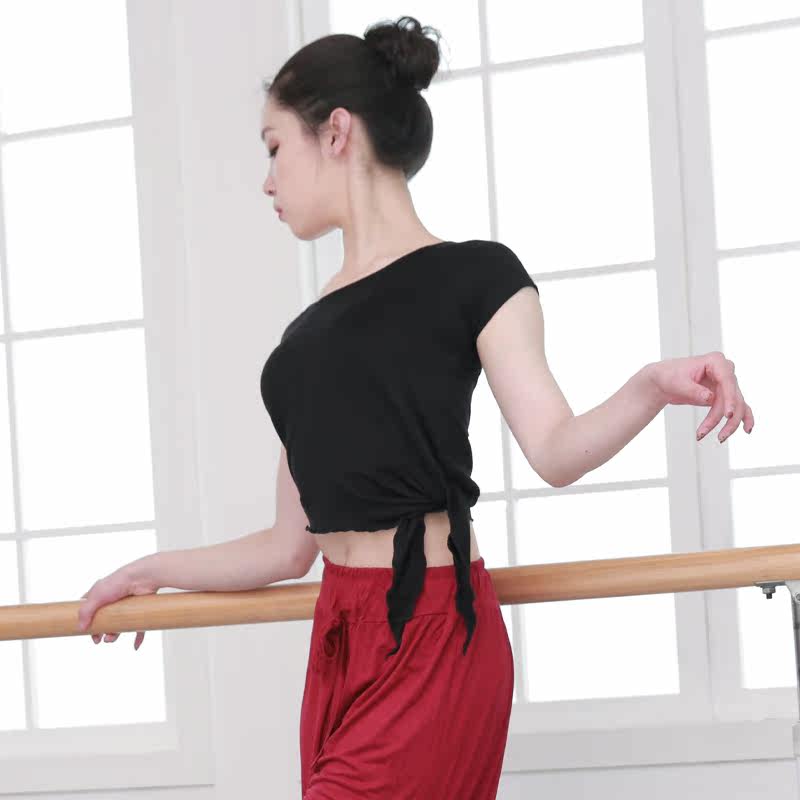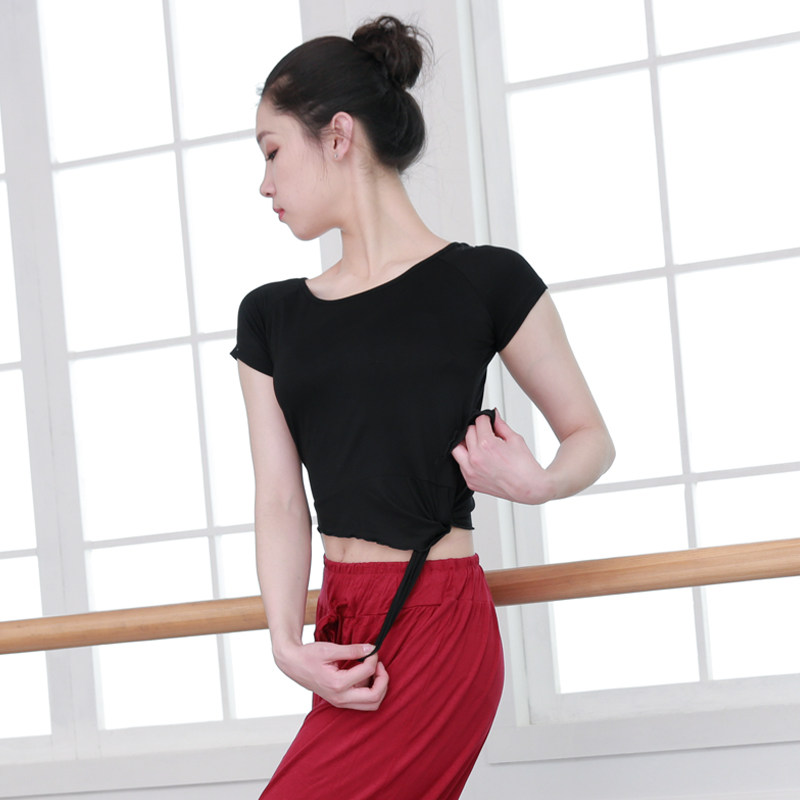 Short-sleeved dance clothes belly dance yoga clothes female modal side tie short-sleeved body training clothes top