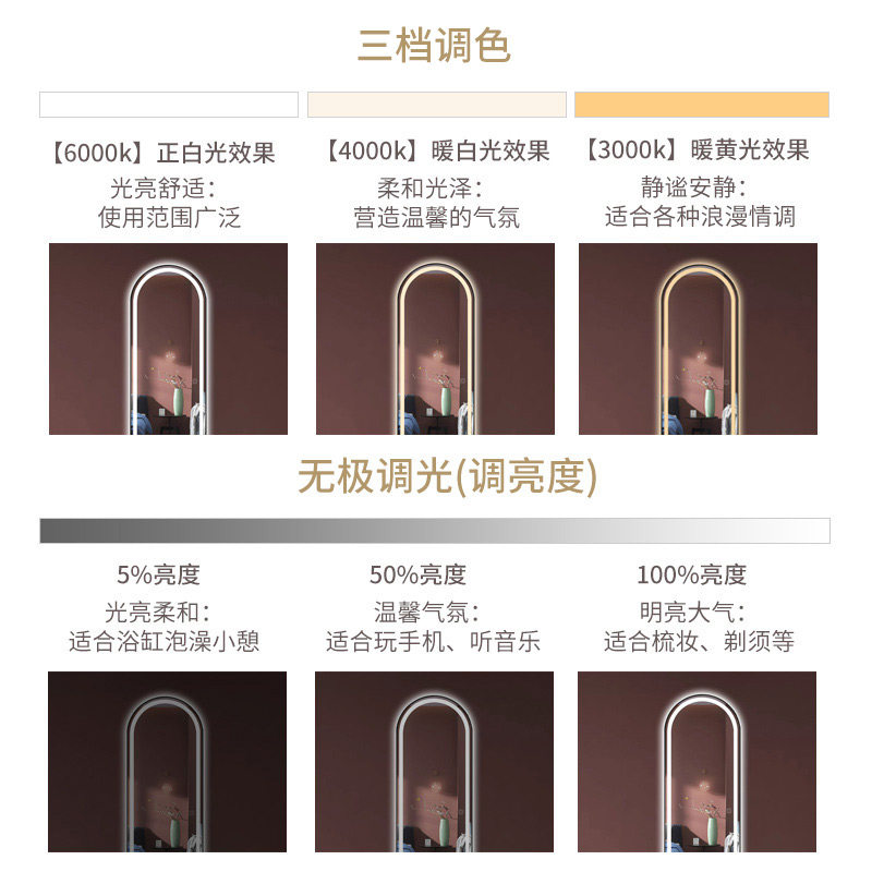 Charm black (600*1650) Human body sensor switch - default white light Warm light remarks Charm black (500*1600) One-touch stepless dimming Color matching Charm black (500*15
