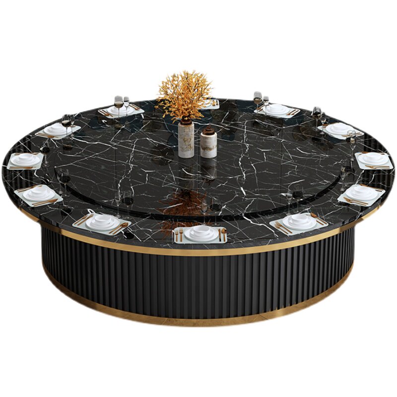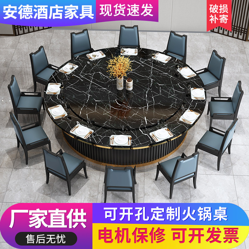 Electric dining table Hotel restaurant large round table with turntable Dining table and chair combination 15 people 20 people 30 people Dining room large round table