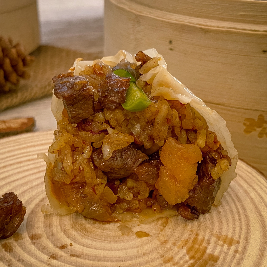Happy meal of red glutinous rice beef, meat and cereal with traditional pastries of brewed wheat