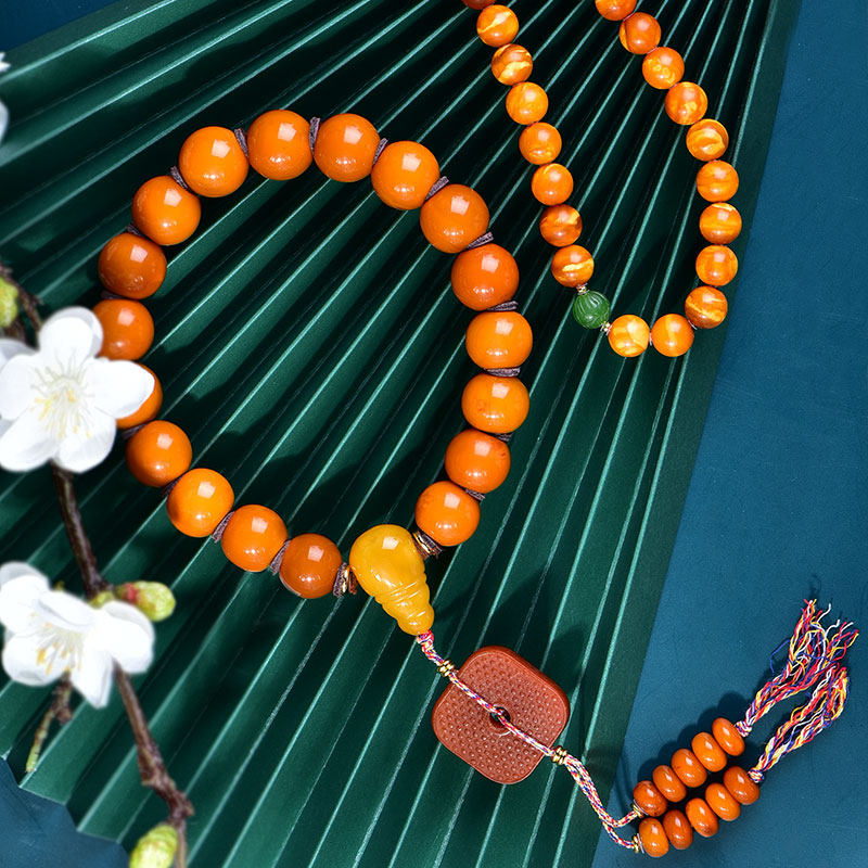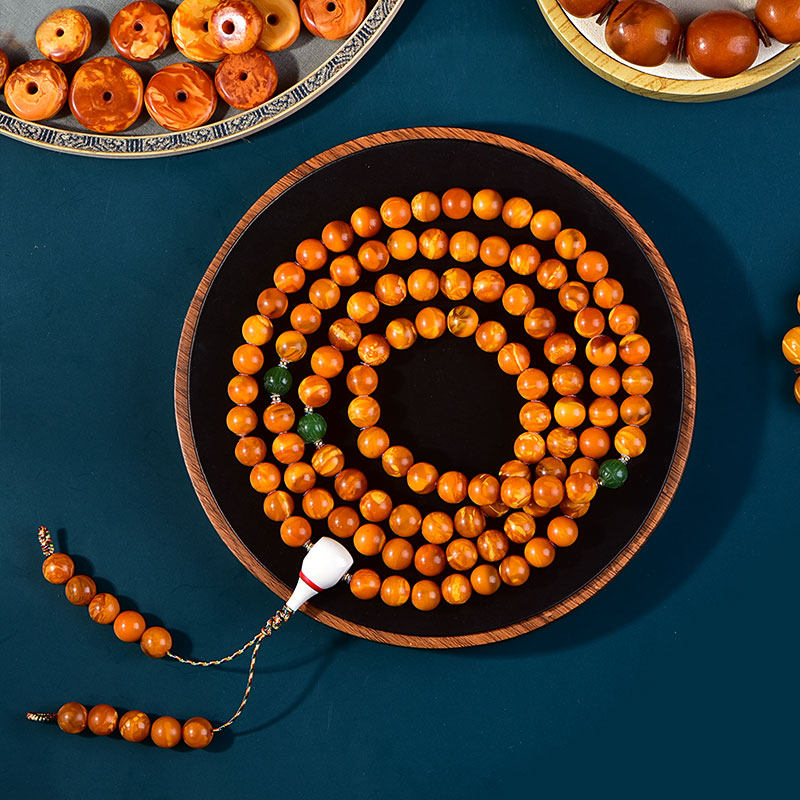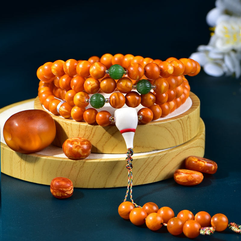 Zhengya Jewelry (Handed down) West Asia Backflow Old Beeswax 108 Buddha Beads Multi-circle Necklace Old Flower Wax