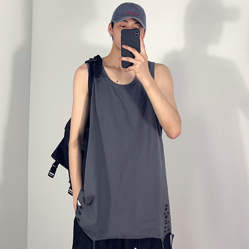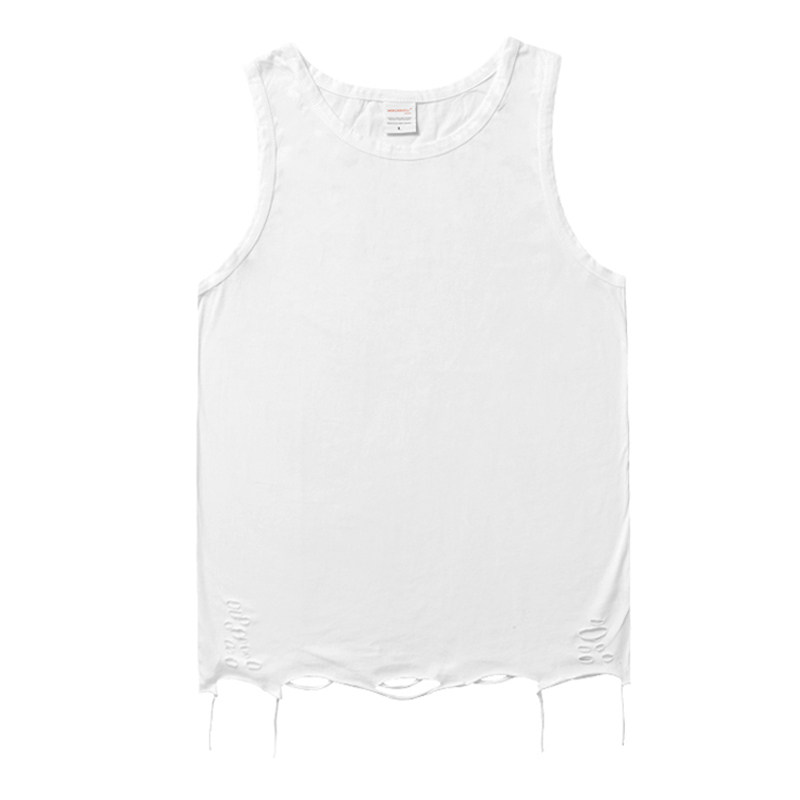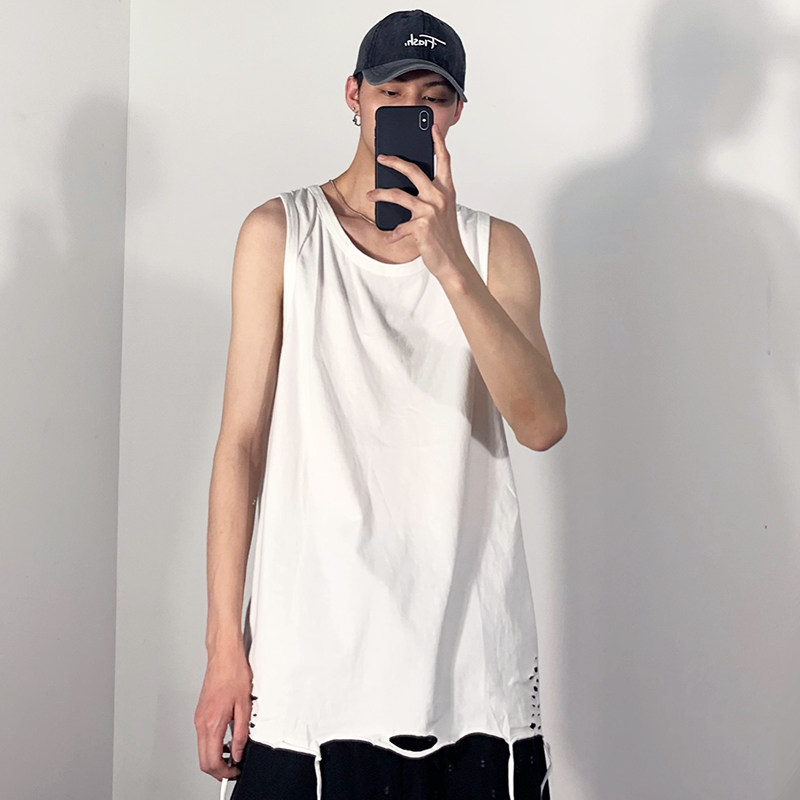 Big head president hole vest men's tide high street base loose white sleeveless T-shirt folded inside with a shoulder summer